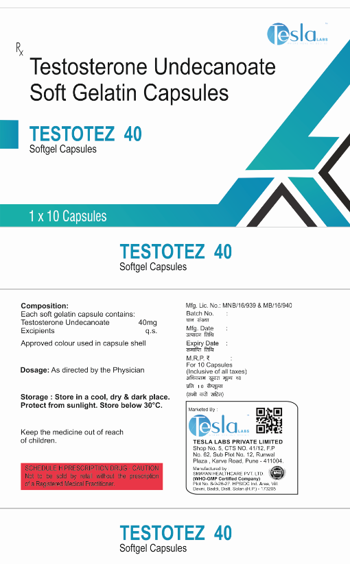 Testosterone Undecanoate contains 40 mg of the active ingredient called testosterone undecanoate. Testosterone undecanoate is turned into testosterone by your body. Testosterone is a natural male hormone known as an androgen, a type of sex hormone necessary for the normal sexual development of males. It is only prescribed to men with known medical conditions. It helps in restoring the level of testosterone in the male body. Testosterone belongs to a class of drugs known as androgens. It helps the body to develop and maintain male sexual characteristics (masculinity), such as a deep voice and body hair. It also helps to maintain muscle and prevent bone loss, and is needed for natural sexual ability/desire.